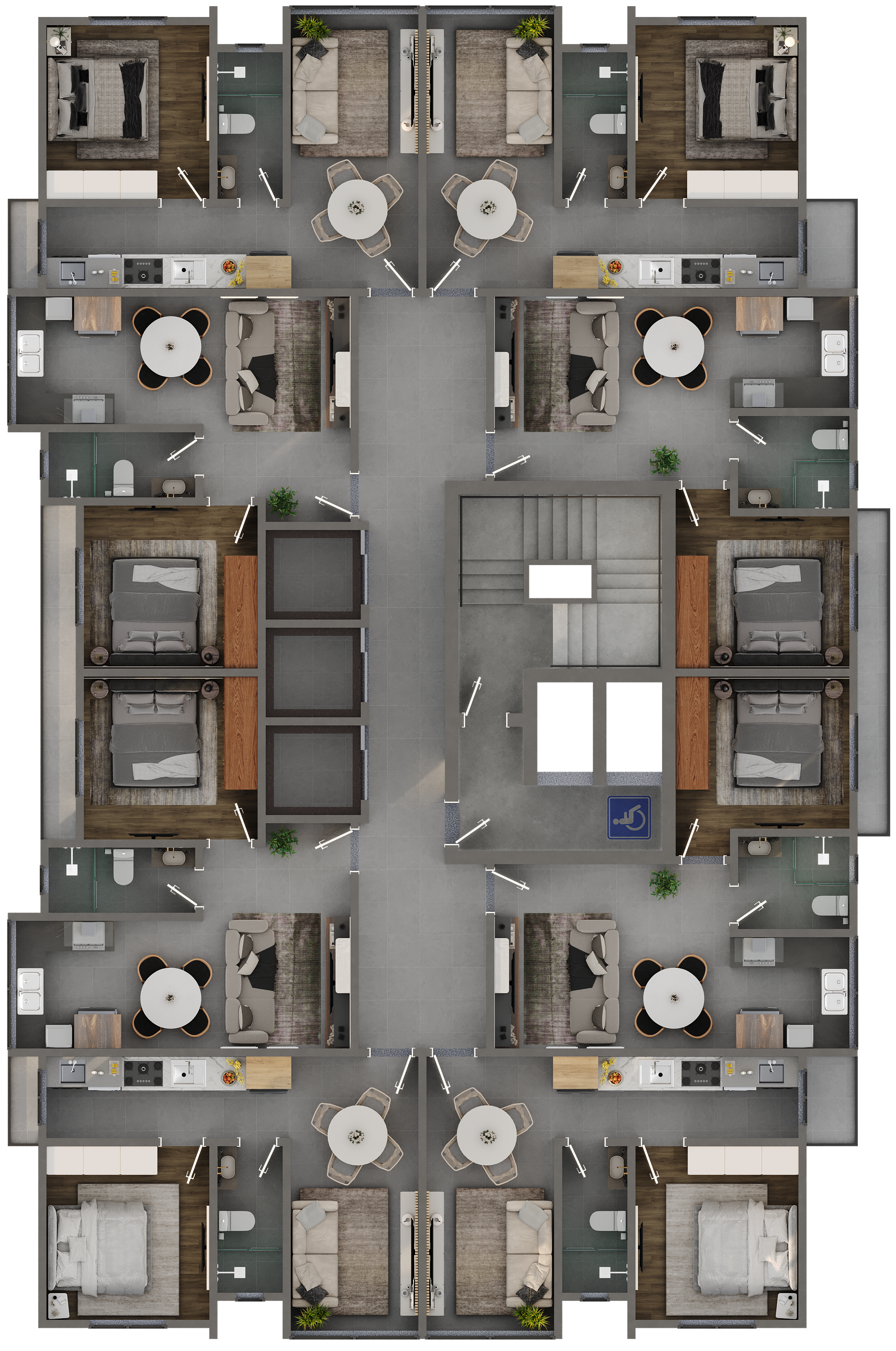 Apartamentos com plantas inteligentes, aproveitamento máximo dos espaços e acabamentos premium que fazem toda a diferença no seu dia a dia.